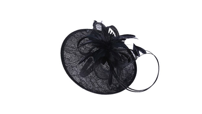 麻紗發(fā)飾_麻紗蕾絲印花紋時裝頭飾,羽毛桿裝飾花象牙白時尚頭箍宴會婚紗禮帽,帽子加工廠家。