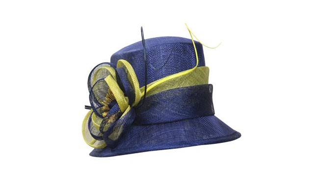 帽子整體采用比軟寧靜的秀場大熱的深蘭色,搭配明亮的黃色,大膽而不張揚(yáng),優(yōu)雅的貴族氣息。