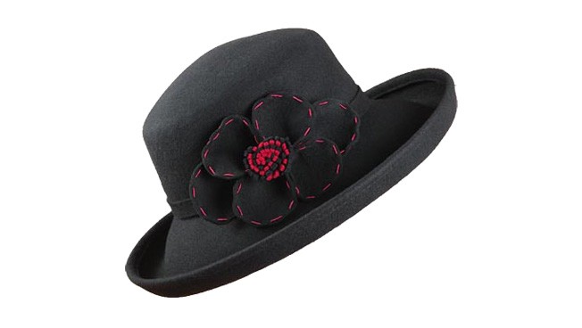 100%純羊毛的帽子,卷邊的大帽檐設(shè)計(jì),透出一種厚實(shí)感,顯得十分的保暖。